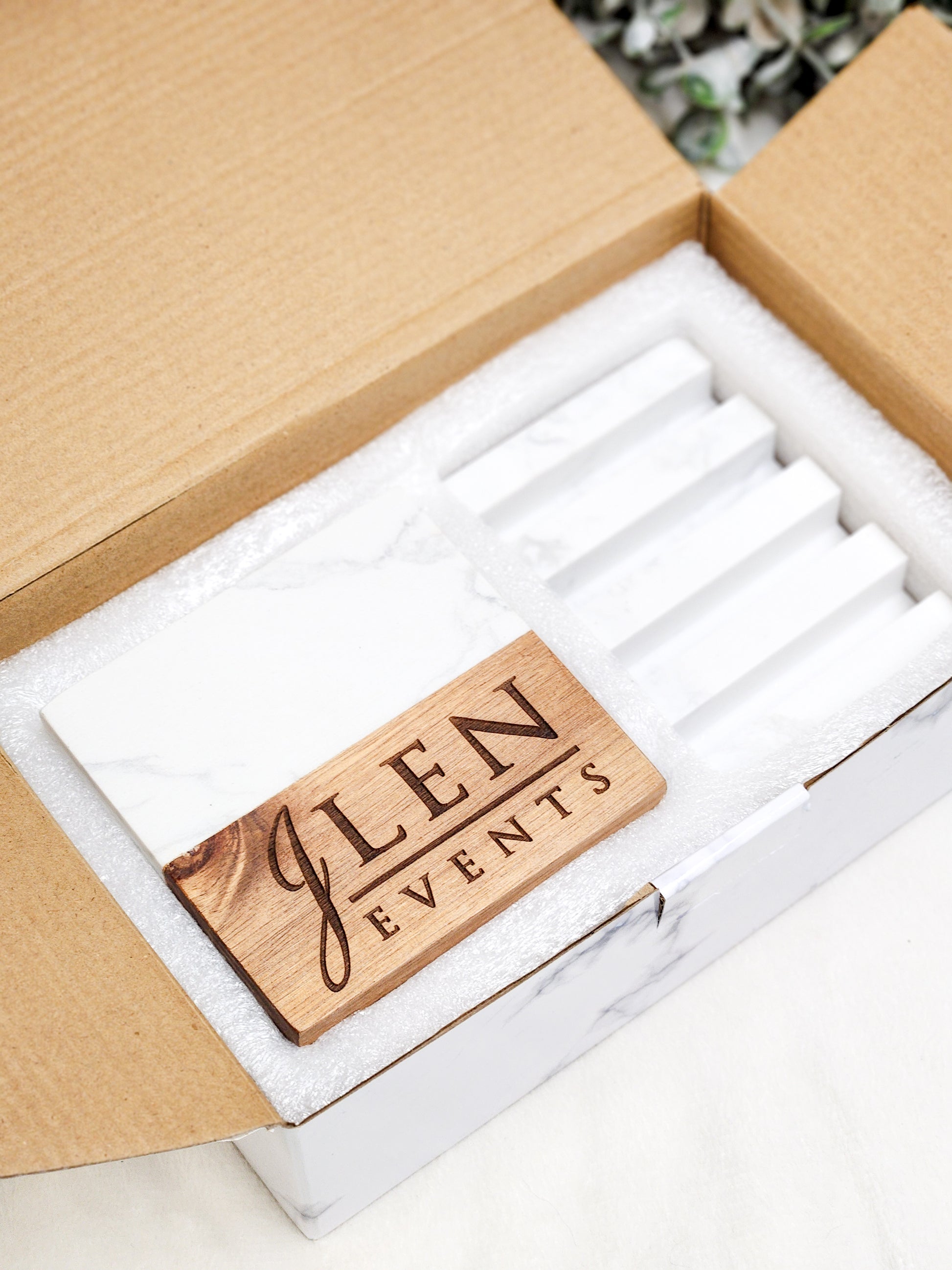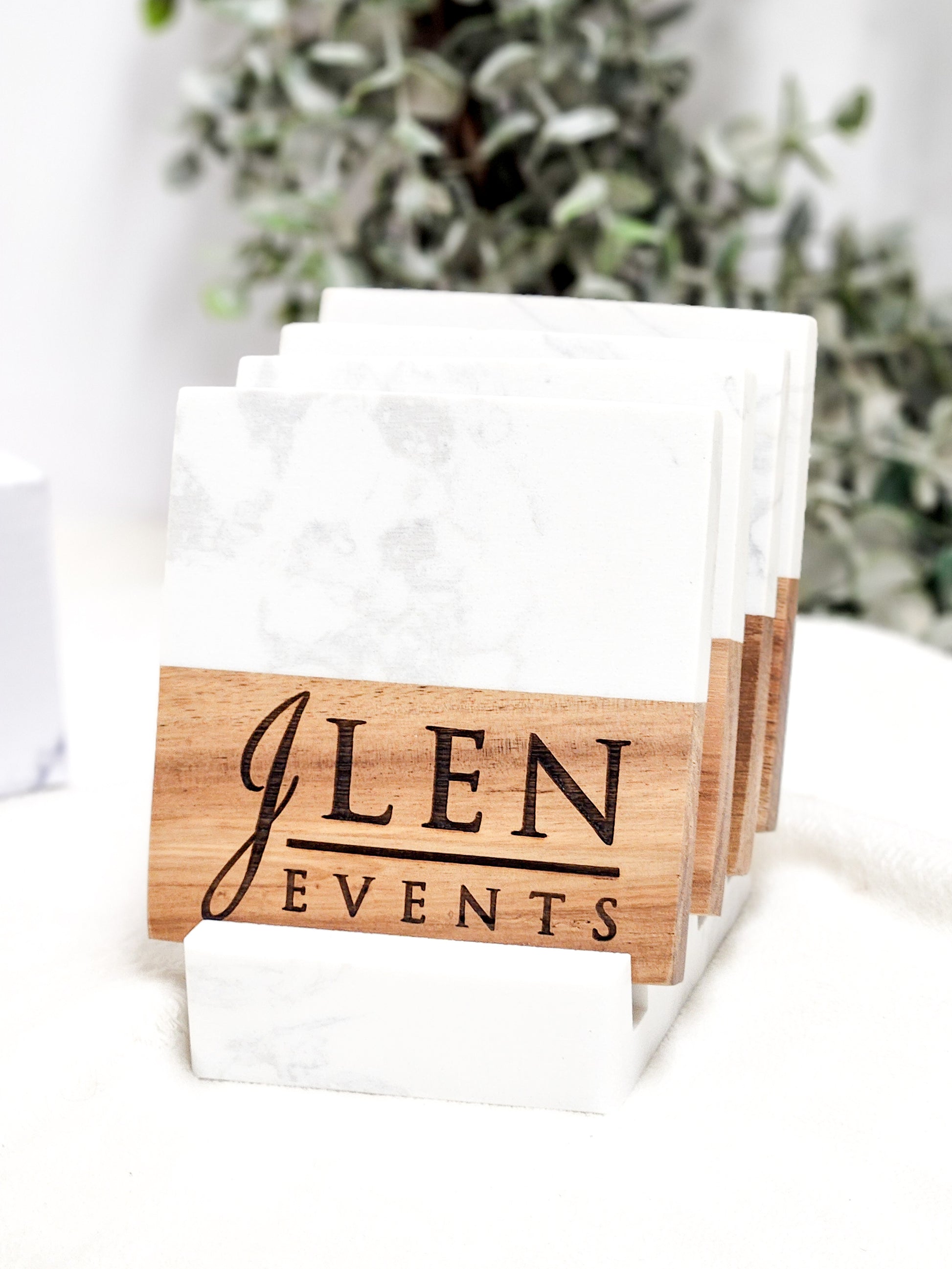 Custom Engraved Marble Coasters – Corporate & Business Logo Gifts